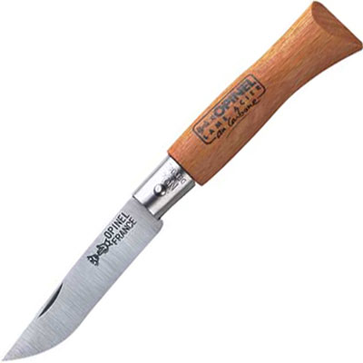 Opinel No 4 Carbon Steel folding knife is a fairly small knife that does not features the Virobloc safety ring. This little knife is commonly used to perform small tasks such as opening letters or boxes. By Opinel Knives.