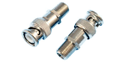 Video plug adapter; "F" female to BNC male. By Aim Electronics.