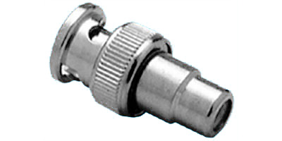 Video plug adapter; RCA female to BNC male. By Aim Electronics.