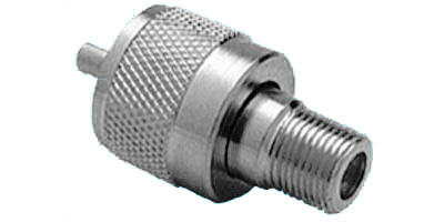 Video plug adapter; "F" female to UHF male. By Aim Electronics.