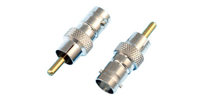 Video plug adapter; BNC female to RCA male. By Aim Electronics.