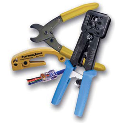 EZ-RJPRO HD Basic Installation Kit. Includes EZ-RJPRO HD Crimp Tool, 50 EZ-RJ45 Connectors, Coax & Round Wire Cable Cutter, CAT5e Cable Jacket Stripper. By Platinum Tools.