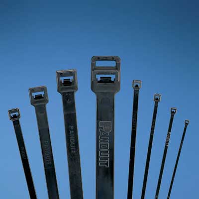 5.6" Pan-Ty weather resistant cable ties, intermediate cross section, nylon 6.6, black. Pack of 1,000. By Panduit.