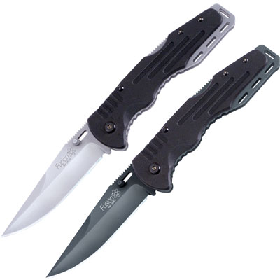 Fusion Salute, black oxide blade. Take the machined G10 handles in combination with scalloped full-length steel liners for a whole new look. Add a big lockback, smooth as silk operation, and a proven Bowie style blade. By SOG Knives.