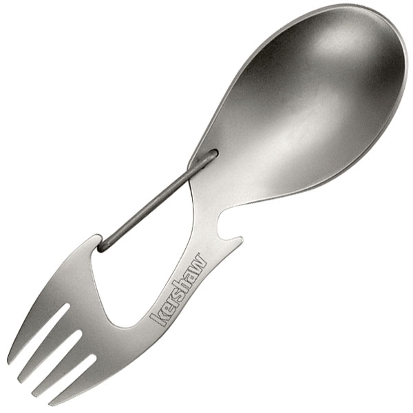 Kershaw Ration Spoon-and-fork Tool is a compact tool that also offers a generously sized spoon - so you can get a real mouthful of that soup or chili you're eating - as well as a fork with tines long enough to actually be useful. By Kershaw.