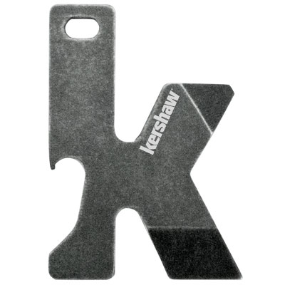 Kershaw K-TOOL in the shape of the Kershaw logo "K", adds Kershaw class to your key ring. It features a handy bottle opener to making getting to your favorite liquid refreshment quick and easy. When you need to tighten or loosen a screw, the K-TOOL's got it covered with a handy flathead screwdriver tip. For roughed-up good looks, we've added our popular BlackWash finish and a lanyard hole that makes it easy to add the K-TOOL to a key chain. And at less than an ounce, it won't weigh down your key chain, either. By Kershaw.