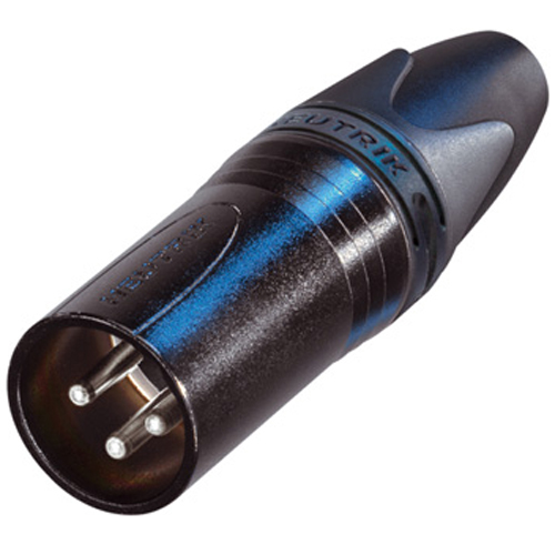 NC3MXX-BAG 3 pole male cable connector with black metal housing and silver contacts. By Neutrik.
