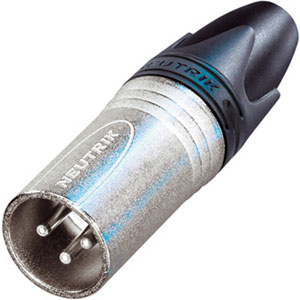 NC3MXX 3 pole male cable connector with Nickel housing and silver contacts. By Neutrik.