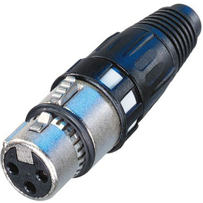 3 pole female cable connector, RF-protected, gold contacts. The XCC XLR cable connector Series with circumferential shield contact provides excellent RF-protection to transmit digital audio signals most efficient and reliable. This XLR features a coaxial ground spring and a coaxial hex crimp ferrule at the cable entrance for proper and reliable transition of the shield to the shell. By Neutrik.