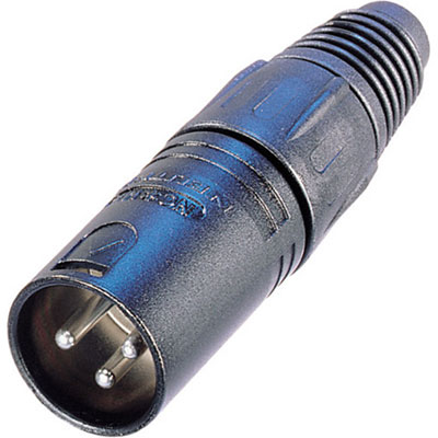 Neutrik 3 pole male cable connector with black metal housing and gold contacts. The "industry standard" XLR cable connector, easy to assemble with only 4 parts and no screws. Compact design with sturdy diecast shell, fibreglass reinforced hard plastic insert and chuck type strain relief for secure clamping of all cables. By Neutrik.