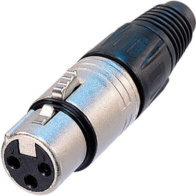 Neutrik 4 pole female cable connector with Nickel housing and silver contacts. The "industry standard" XLR cable connector, easy to assemble with only 4 parts and no screws. Compact design with sturdy diecast shell, fibreglass reinforced hard plastic insert and chuck type strain relief for secure clamping of all cables. By Neutrik.