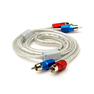 Premier-quality 5m analog audio cable, 2 RCA male connectors on each end. Silver braided jacket with 100% foil shield and directional drain wire. By Phoenix Gold.