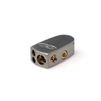 Top-mount positive battery clamp. Connects two 8 gauge and one 4 gauge cables. By Phoenix Gold.