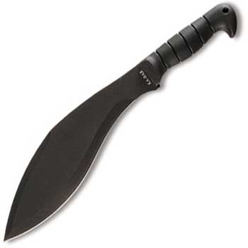 Black KA-BAR Kukri Machete. Surviving toughest field-testing, the Kukri boasts excellent test results in chopping and basic field use. With leather/cordura sheath. By Ka-Bar.