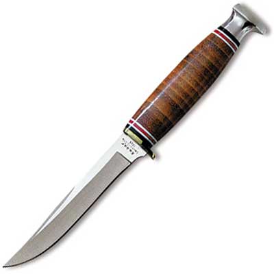 Little Finn. One of three classically styled leather handled hunters, the Little Finn has been a popular member of the KA-BAR product line since the early 1900s. With leather sheath. By Ka-Bar.