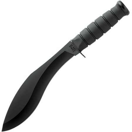 Ka-bar 1280 Combat Kukri. This heavy-duty chopper gets it's shape from it's older sibling, the Kukri Machete. At about 80% the size of the larger version, the Combat Kukri performs just as well at clearing brush and small tree limbs. It's smaller profile makes it a little easier for toting around - at just shy of a pound, it's a more appropriately sized tool for combat carry as well. MOLLE compatible heavy-duty polyester sheath included.By Ka-Bar.