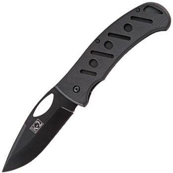 K2 Gila Folder. Large Clip Point side lock folder made with stainless steel blades and textured aluminum handle scales. By Ka-Bar.