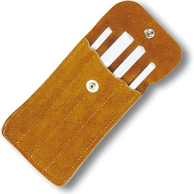 The 400F ceramic file set is ideal for detailed sharpening. It contains four distinctly shaped stones: round, square, triangular and slip. By Spyderco.