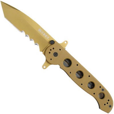 M16-14 Special Forces - Desert Tan G10 Handle, AutoLAWKS, combined razor-sharp & Veff serrated cutting edge. By Columbia River.