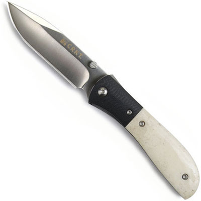 M4-02M - Resin Infused Fiber w/G10 Bolster, Designed by Kit Carson in Vine Grove, Kentucky. The late, great knifemaker Kit Carson is widely known for his M16 design, but his most consistent selling custom model has been his classic M4. This latest version, the M4-02M, features a striking satin-finish blade and a handle made of white, resin-infused fiber with black G10 bolsters. It's not just a great-looking M4, it's one of the classiest folding knives you can get. By Columbia River.