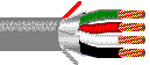 Shielded speaker wire, 4 conductors, AWG 16, plenum. By Belden.