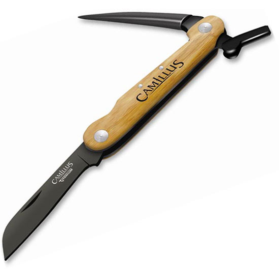 Camillus 18589 7.5" Carbonitride Titanium Folding Knife with Marlin Spike and Bamboo Handle. Dual locking system. Bamboo Handle. Blade is 2.5" in length. Liner lock. Lifetime warranty. By Camillus.