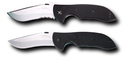 The Emerson Commander is the winner of the "Best Overall Knife of the Year" at the International Blade Show in Atlanta, GA. Because of its ruggedness, it has become a favorite of hunters, outdoorsmen and adventurers the world over. It features the patented Wave opening feature with Dragon's Teeth™ serrations. Satin finish, available in plain or partially serrated edge. By Emerson.