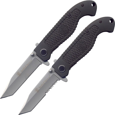 Smith & Wesson - CKTAC/CKTACS, rubber coated steel liner handle, plain or serrated Tanto blade. By Taylor Cutlery.