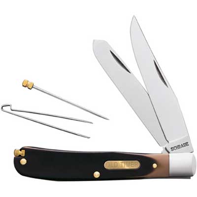 Schrade Knives and Tools - 96OT Old Timer 4 3/16" Bearhead Trapper w/ Pick, & Tweezers. By Taylor Cutlery.
