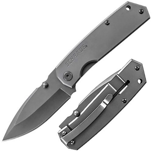 Schrade SCH303M - Mini Frame Lock Folding Knife Drop Point Blade Steel Handle. Schrade Mini Frame Lock Folding Knife, Titanium Coated 9Cr18MoV High Carbon Stainless Steel Drop Point Blade with Ambidextrous Thumb Knobs, Titanium Coated Stainless Steel Handle with Pocket Clip. By Taylor Cutlery.