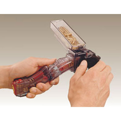 • Simply pour 50 22 LR shells into the hopper, insert the magazine and crank it full