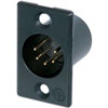 5 pole male receptacle, solder contacts, black metal housing, gold contacts. By Neutrik.