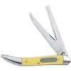Case 320094F SS Yellow Delrin Fishing Knife. Long Clip and Scaler Blades w/ Hook Disgorger, 4 1/4" closed; 2.7 oz. By W.R. Case & Sons.