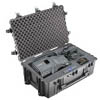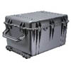 Pelican 1690 Transport Case. Easy open Double Throw latches, Retractable extension handle, 4 strong polyurethane wheels with stainless steel bearings. The case is watertight, crushproof, and dust proof. By Pelican.