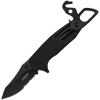 In addition to a modifed tanto blade with partial serration, the Funxion EMT features a cord cutter, hex wrench, and carabiner clip. By Kershaw.