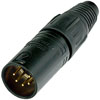 5 pole male cable connector with black metal housing and gold contacts. By Neutrik.