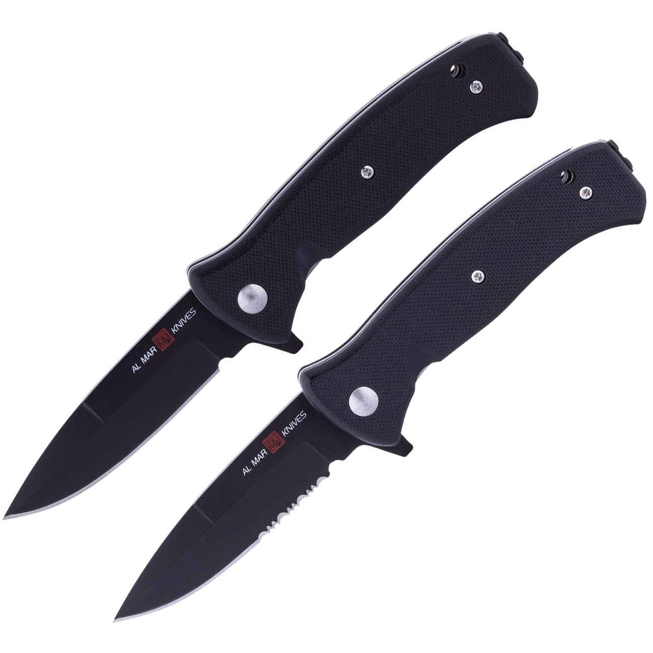 Al Mar AMK2204/AMK2205 3" S.E.R.E. 2020 Night G, Plain Edge (AMK2204) or Combo Edge (AMK2205). The Mini SERE 2020 is world renown as one of the strongest tactical folders in existence. Originally designed by Al Mar and Colonel Nick Rowe in the early 1980's for the U.S. Army's SERE school, today's updated models are stronger and the most precisely crafted versions we've ever made. The Mini SERE 2020 features Black G-10 handles, pillar construction, flow through design, and our left/right reversible Deep Carry Pocket Clip that provides discrete carry and delivers the kind of performance military and law enforcement professionals demand for real world hard use. By Al Mar.